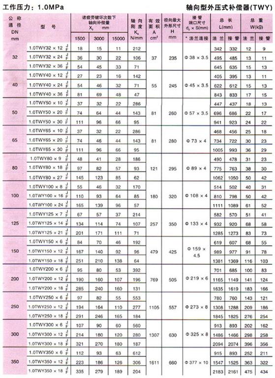 軸向型外壓式波紋補償器(TWY)參數3