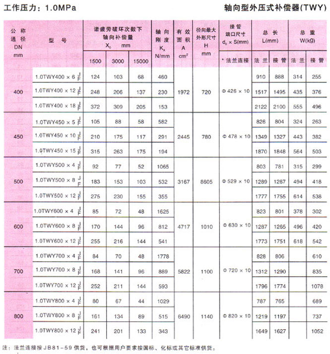 軸向型外壓式波紋補償器(TWY)參數(shù)4