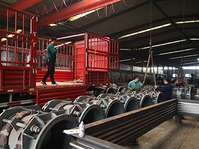 (5) 水平L形管道架空敷設三個球墊時,_在每個球墊下設置平臺,安裝球墊臺車,_球墊自由移動。此外,在靠近管道的彎頭下設置足夠長橫擔的滑動支架,以_管道發生熱位移時滑動支架不會脫落。