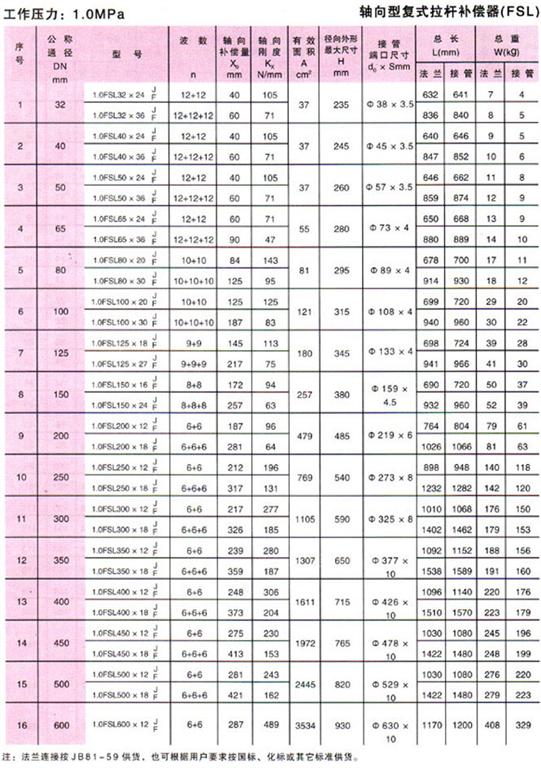 軸向型復式拉桿波紋補償器(FSL型)參數2
