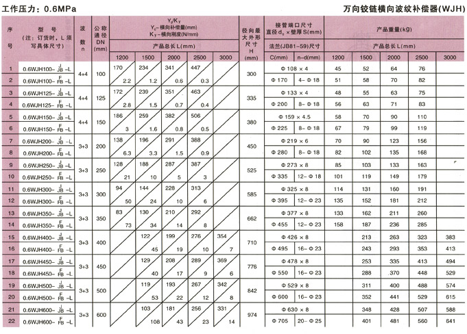 萬向鉸鏈橫向波紋補償器(WJH)產品參數1