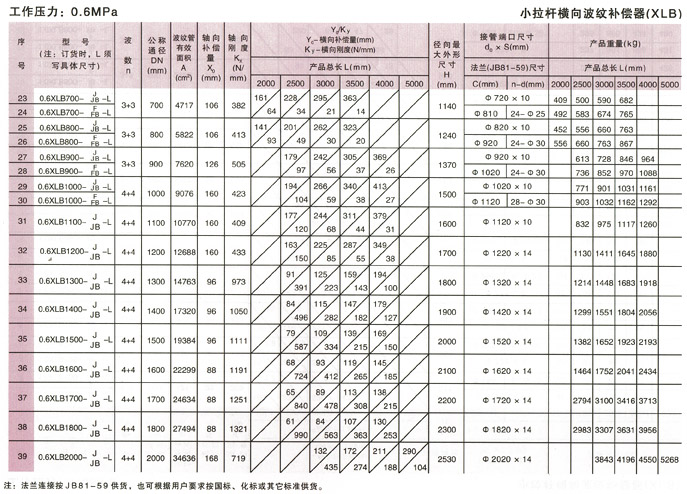 小拉桿橫向波紋補(bǔ)償器(XLB型)產(chǎn)品參數(shù)2