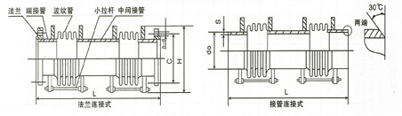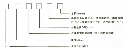 表示公稱通徑為500mm,工作壓力為0.6MPa,長度為1500mm,不銹鋼法蘭連接的小拉桿橫向波紋補(bǔ)償器。