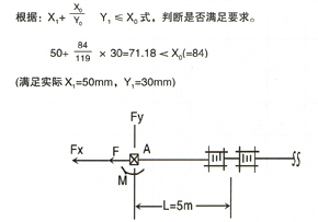 當(dāng)補(bǔ)償器同時存在軸向位移和橫向位移時,兩種補(bǔ)償量(X1,Y1)的選取應(yīng)滿足下列關(guān)系式: