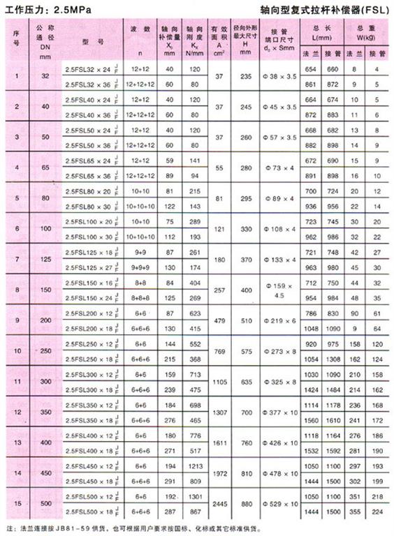軸向型復式拉桿波紋補償器(FSL型)參數4